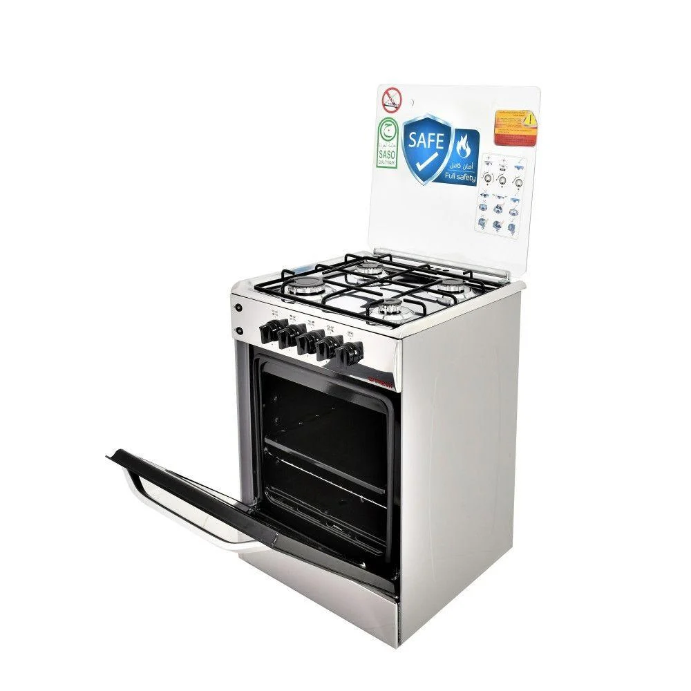 ■ فرن غاز فريش – موديل FSC5555 يتميز باداء قوي وتصميم مدمج يناسب المساحات الصغيرة، مزود باربع شعلات غاز عالية الكفاءة توفر توزيع حرارة متساوي للطهي المتقن. يحتوي على شواية مدمجة واضاءة داخلية للفرن لسهولة المتابعة، مع زجاج مزدوج مقاوم للحرارة واشعال ذاتي للعيون والفرن. يتمتع بدرجة امان عالية وهيكل ستانلس ستيل مقاوم للصدأ ليمنحك تجربة طهي مريحة وامنة في المملكة العربية السعودية.